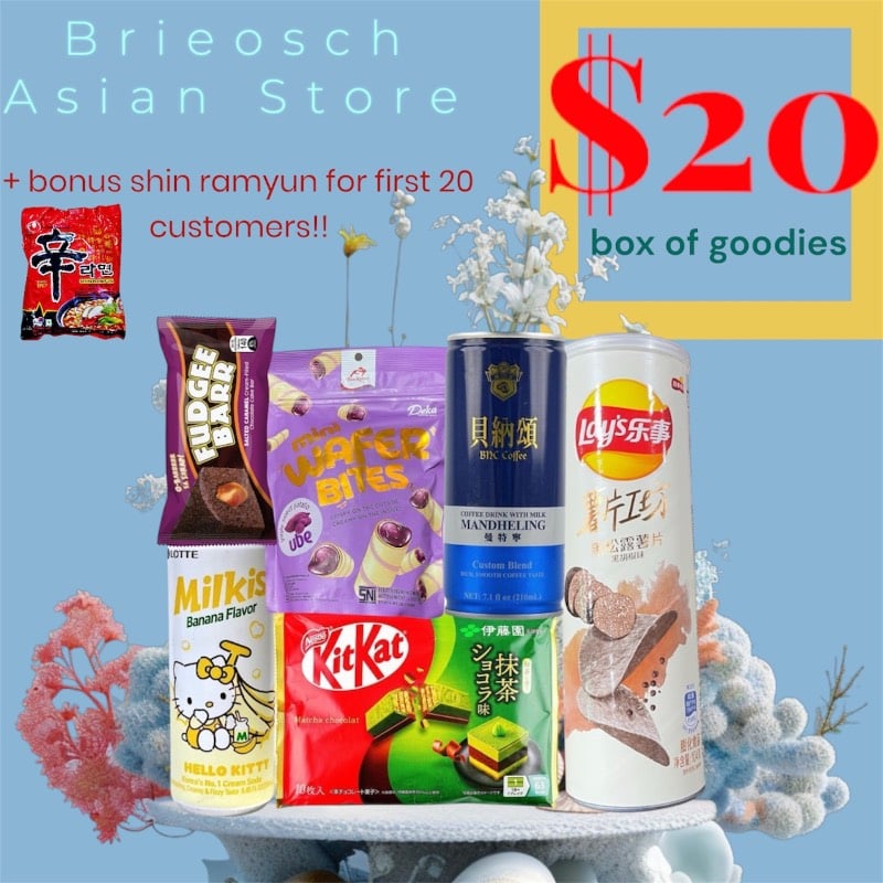Includes: *Lay's, *Deka Wafer Bites, *KitKat, Fudgee Barr Salted Caramel, *Milkis cream soda, and *Mandheling Coffee drink.